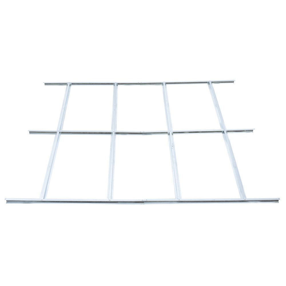 Az alapszerkezet szétszerelt állapotban érkezik, de az összeszerelése egyszerű, és a csomagban részletes útmutató található. Az alapszerkezetet egy burkolt egyenes felületre kell helyezni a kerti tároló alatt, majd rögzíteni a fa padlót vagy OSB deszkákat.