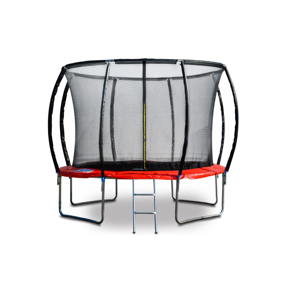 A trambulin belső védőhálóval van ellátva, amely megakadályozza, hogy az ugrálók elérjék a trambulin oszlopait. Az ugrófelület szilárd anyagból készült, csúszásgátló réteggel, míg a rugók megbízható burkolása minimalizálja a sérülések kockázatát. A rugófedél tartós, vízálló anyagból készült, puha töltéssel, és a trambulin oszlopai is vízálló, lágy habborítással vannak bevonva. A védőháló erős és sűrű szövésű, belülről rögzítve a trambulin keretéhez.
