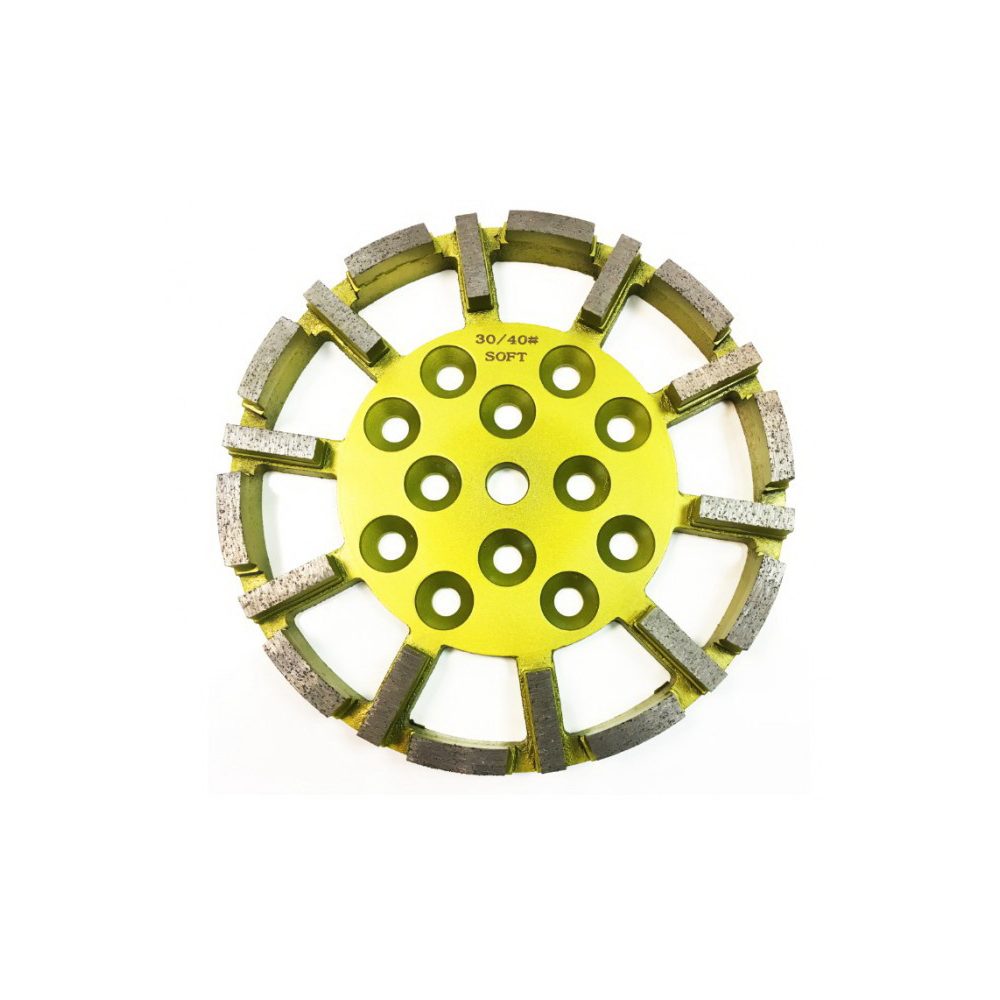 Közepesen durva, kemény felületek csiszolásához, mint öreg, kemény beton, kemény padlók, 2-3 mm-ig terjedő bevonatok sima eltávolításához használható. A csiszolótárcsán 20 db gyémántszegmens található (40x10x10mm).