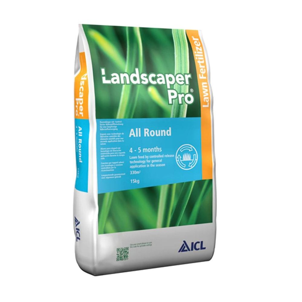 A Landscaper Pro All Round bármilyen kerti gyepfelületen használható gyepműtárgya a tavaszi és őszi műtrágyázás közötti időszakra. Egyedülálló burkolatának köszönhetően tartós tápanyagforrást biztosít a gyep számára. Jól kiegészíthető a Mohásodás csökkentő (Moss Control) és Gyomirtós (Weed Control) gyepműtrágyákkal. Az üde zöld gyepszín érdekében magnéziumot is tartalmaz.