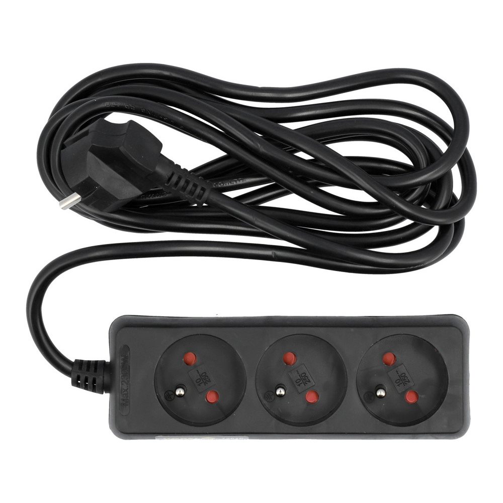 Vorel hosszabbító elosztó hármas, földelt, kapcsoló nélkül 3 m fekete